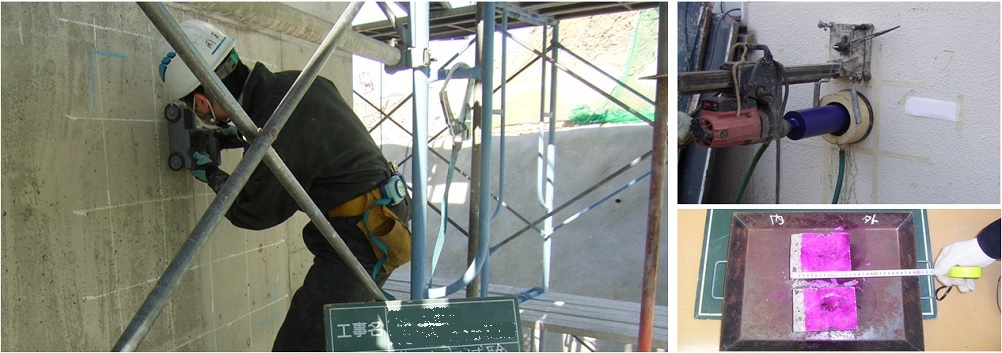目視調査や鉄筋調査を行っております。損傷図の作成、劣化原因の推定を行います。