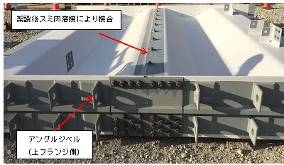 一or二面摩擦高力ボルト継手もあるが、この写真の接合部はスミ肉溶接するとのことなので重ね合せスミ肉溶接継手のようです。 写真のボルトは高力ボルトではない。