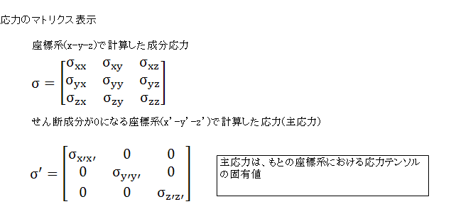 座標軸を原点のまわりに適当に移動するとせん断応力成分が0になる方向が必ず存在する。