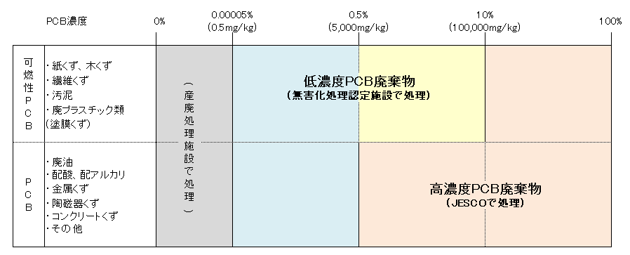 ◆高濃度PCB廃棄物と低濃度PCB廃棄物の分類図